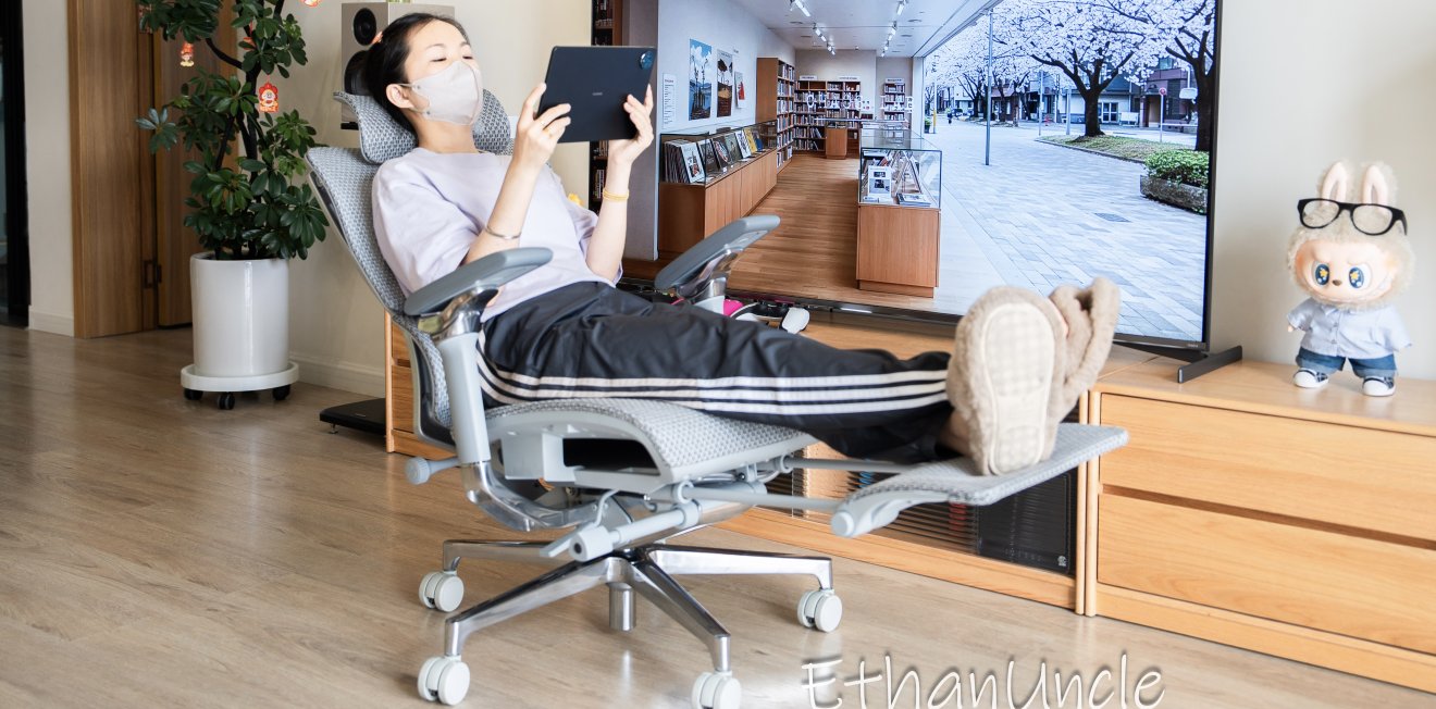 看书的时候,它的8D扶手搭配联动椅背,再加上脚托,整个身体的支撑就很舒服。
