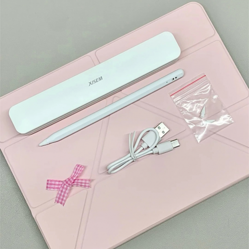 这款电容笔的笔身采用纯净的白色为主色调,线条流畅自然,单支笔的重量也仅13g,非常轻便,长时间握持也不会使手腕酸痛,而且它使用了主动式pom笔头,比较坚韧耐磨,还具有智能跟踪笔迹的功能,传输灵敏,写字慢一些的话,也没有明显的断触情况。此外,它支持双充,既支持磁吸iPad闪充,又支持USB-C闪充,续航时间也有11小时,还算不错。