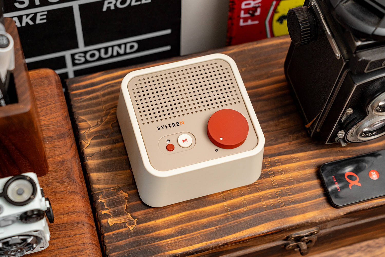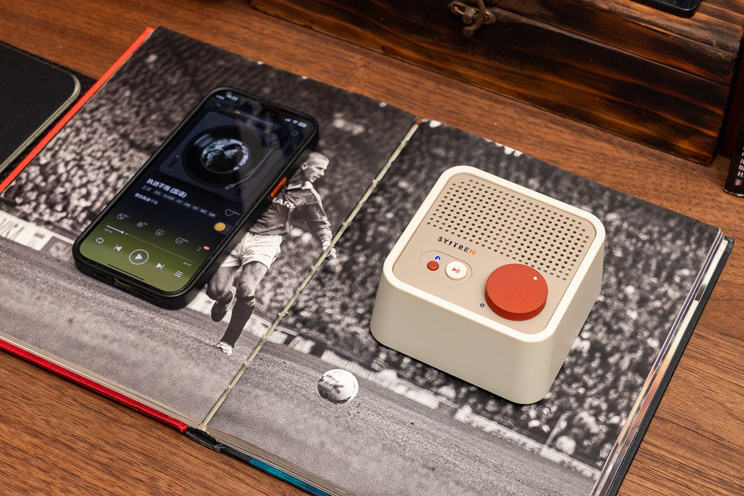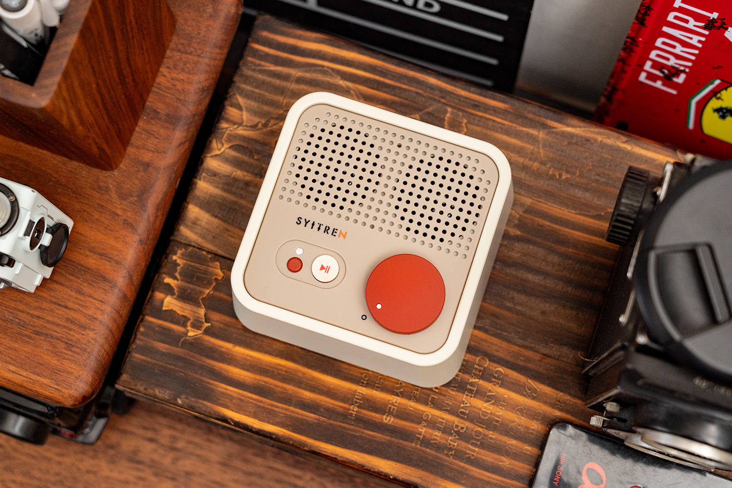 我的桌面音箱是猫王Mate4,用了有几年了,音质是没话说,不过随着乱七八糟的摆件越来越多,它的个头就成为了一个弊端,占用的空间太大了,早就想换一个小点的,但一直都没有找到合适的,直到看到赛塔林Syitren N100,瞬间就心动了,复古的风格与我桌搭十分契合,体积比猫王Mate4小了许多,但比一般的便携蓝牙音箱要大,音质和续航都应该很不错。