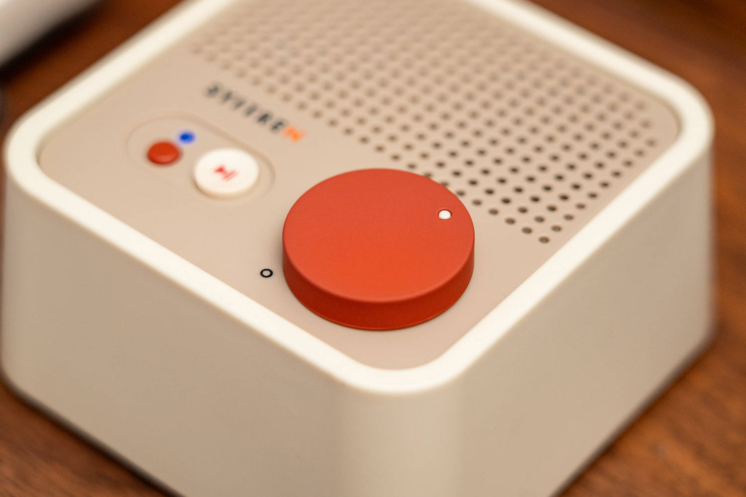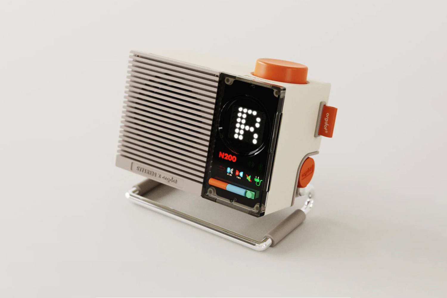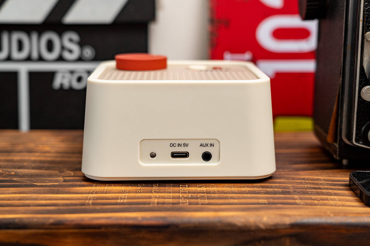 外观是由桔点设计商店操刀,方方正正,复古中带有一丝硬朗,上大下小的阶梯造型让音箱看上去更加富有质感,箱体的复古白实际上是偏奶白色,搭配上浅栗黄色的面板,再用活力橙圆形按键和旋钮来点缀,整体的设计感和层次感都非常丰富。