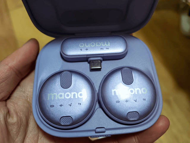 这款麦克风内置可充电锂电池,单次续航长达5小时,搭配充电盒综合续航可达15小时,满足长时间录制需求。博雅Omic的操作也非常简单,打开充电盒取出接收器和麦克风,即可自动连接进入收声模式,无需复杂设置。它还支持USB-C数字输出,兼容电脑、平板、安卓设备等多种设备。此外,充电盒设计与TWS耳机类似,内置电池,可为麦克风多次充电,收纳盒上方的网兜还可收纳防风罩和充电线。