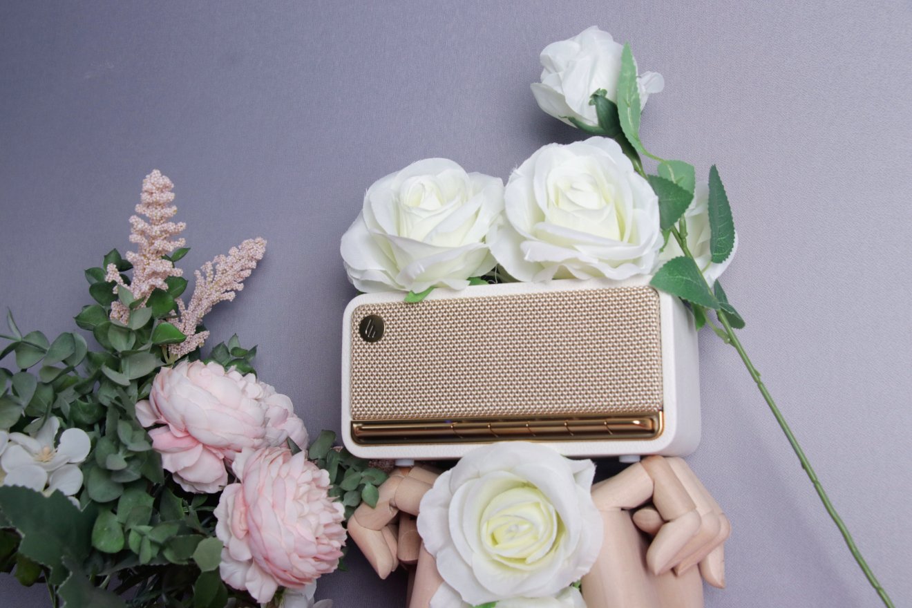而当你拿起音箱时就会发现,白色柔性皮革包裹的漫步者M230竟然拥有十分细腻的手感,而且皮革还能起到减震缓冲的效果。在按键设计上,鎏金配色叠加哑光电镀的处理使得漫步者M230在不同光线上都会呈现出不一样的金属美感。