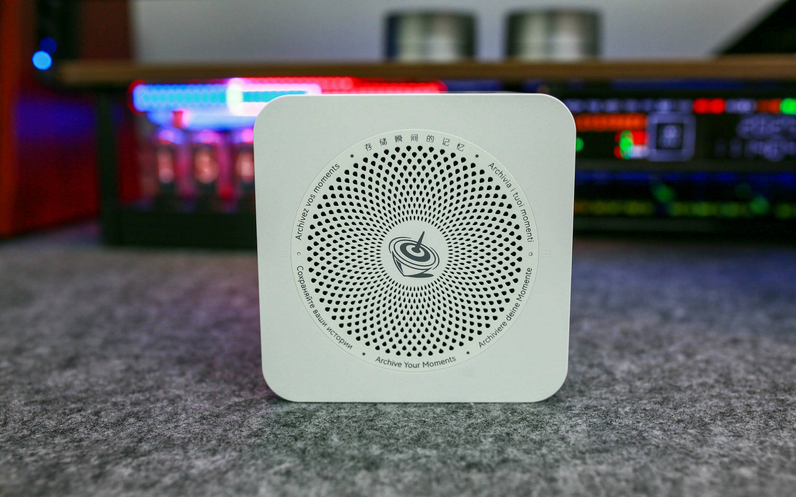 ME mini 顶部出风口采用了圆形与水滴形相结合的开孔设计,相比传统的纯圆形开孔更加美观,视觉上更具辨识度。搭配顶部的中英文标识,不仅增强了整机的设计感,也清晰传达出官方对其“主打存储功能”的定位。