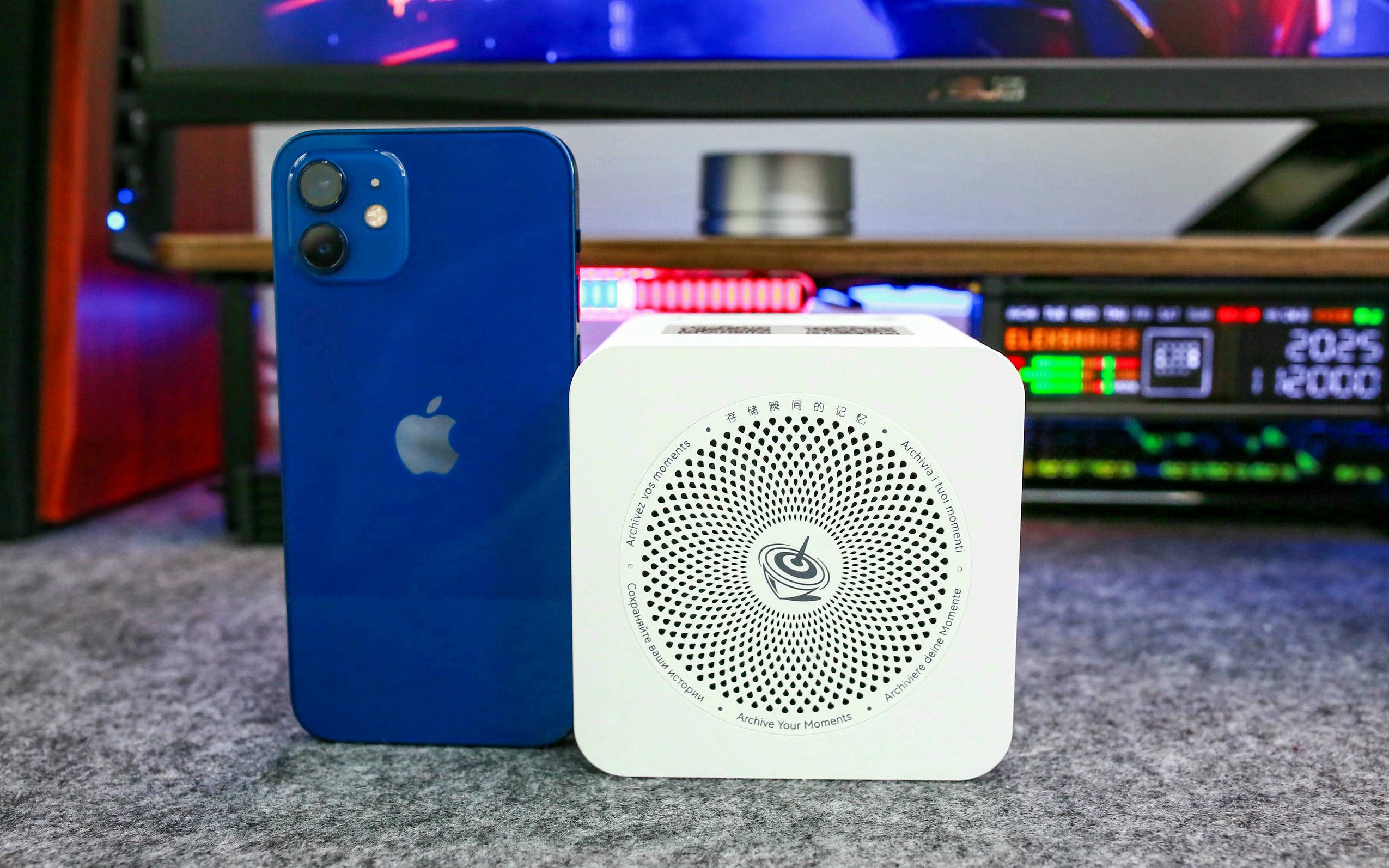 零刻 ME mini在迷你主机中也算是非常小的,这里和苹果12放在一起对比一下: