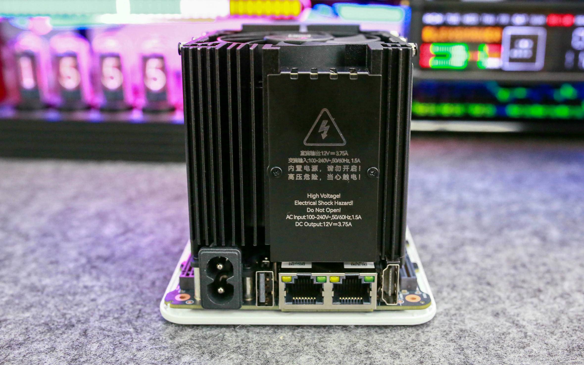 背面下方依次是220V 电源输入、USB Type-A、双2.5G 网口以及 HDMI2.0(4K60)接口。