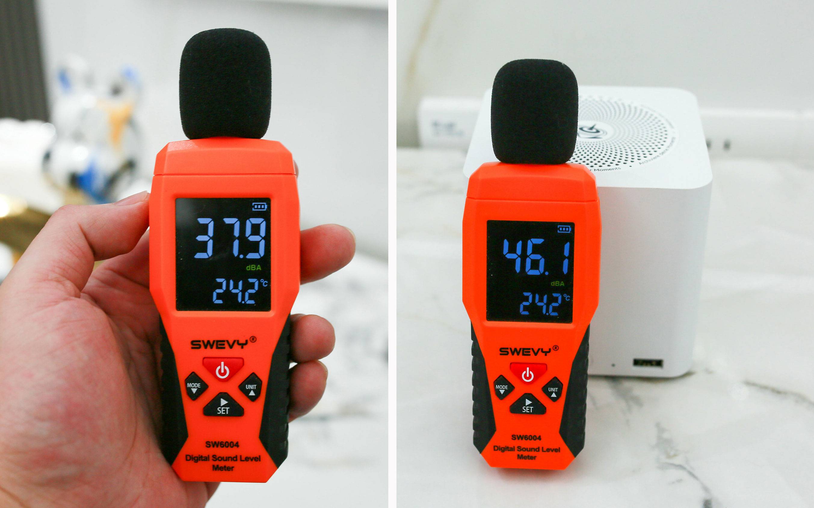 迷你 PC 通常放置在桌面或客厅等近距离环境中,因此噪音控制显得尤为重要。根据官方实测数据,ME mini 在运行时的噪音仅为32分贝,日常使用中几乎察觉不到。实际测试中,环境噪音为37.9dBA,设备运行时用分贝仪近距离测得噪音为46.1dBA,表现非常出色。相比传统NAS设备常见的45分贝以上风扇噪音,ME mini在静音表现上更胜一筹,安静到足以让人忽略它的存在,非常适合对噪音敏感的办公或家庭环境使用。