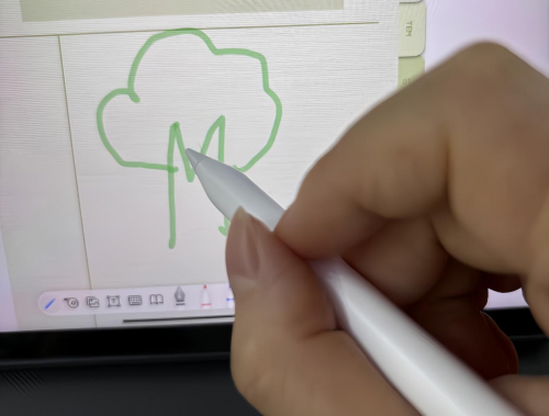 在书写上,这款绿联电容笔同样使用了pom笔尖,书写顺滑自然,还搭载了升级6D倾斜压感技术,可以描述出粗细深浅不同的线条,只是写字的时候速度最好要放慢一点,不然偶尔会出现笔迹一会显示一会不显示的情况。
