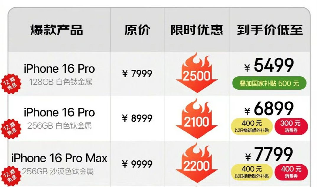 最近天猫苹果官方旗舰店官宣了618活动,iPhone 16 Pro直降2000元还能再享500元国家补贴,到手价 5499元起,还能12期免息,这价格真的很让人心动。