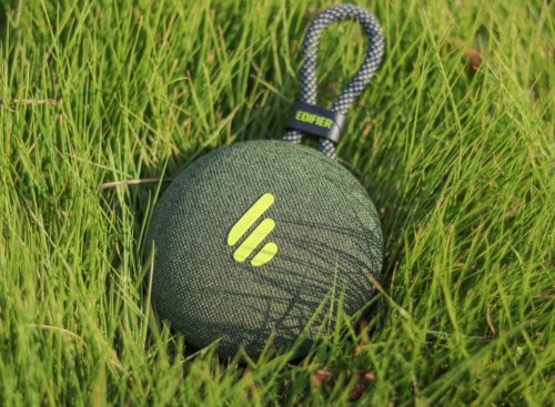 这款蓝牙音箱设计小巧紧凑,同时具备出色的耐用性。机身采用坚固的钢制网罩与硅胶外壳,抗摔又耐造。此外,机身一侧配有织布挂环,方便手提,也可轻松挂在背包或露营车上,携带出行毫不费力。