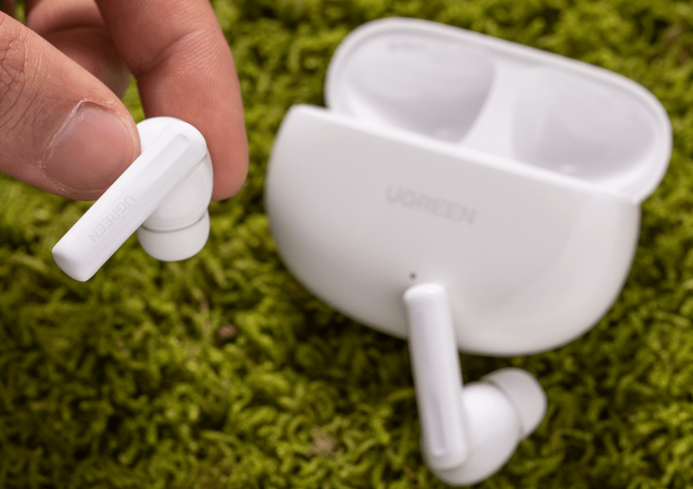 舒适度:绿联 T6 的充电盒采用椭圆鹅卵石形状,线条流畅,手感丝滑,底部配备 Type-C 充电口和配对复位按键,开合清脆有力,耳机为入耳式设计,单只耳机约 4.8g,佩戴的稳定性还可以,不过长时间的佩戴容易有挤压感,适合短时间的佩戴。