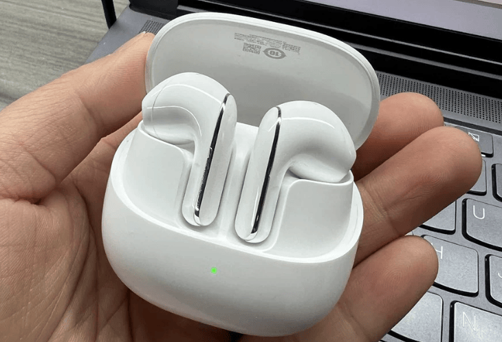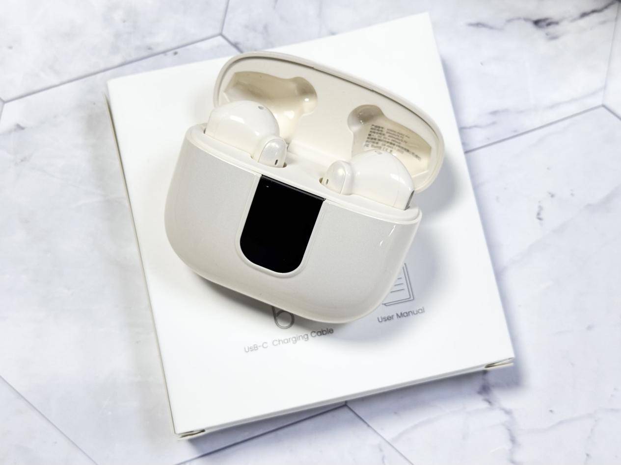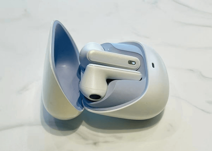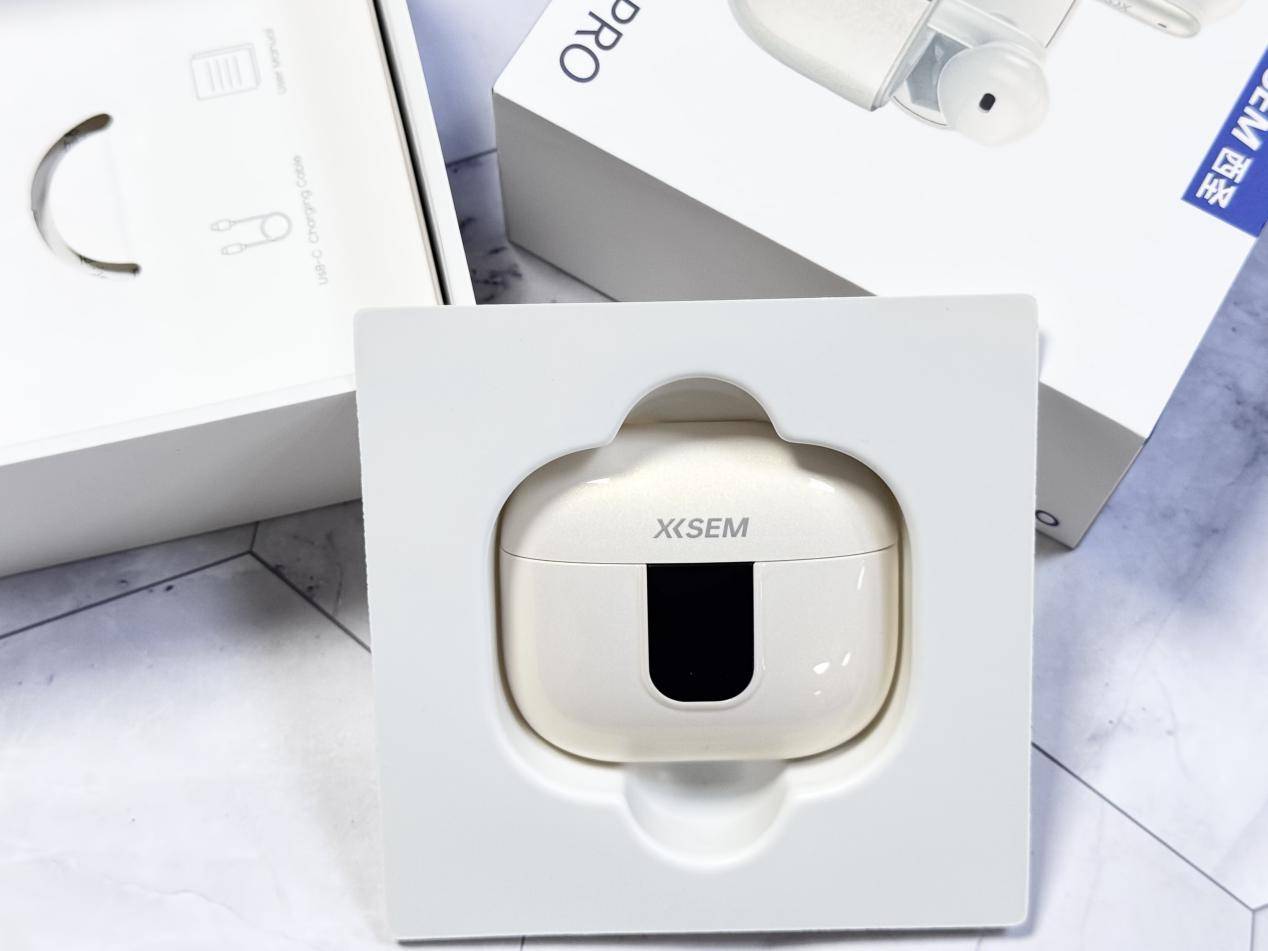 舒适度:采用人体工学 + 偏重心设计,能够很好地贴合耳朵轮廓,佩戴稳固,即使进行运动等活动也不易掉落,单只耳机仅重 4.8g,实测佩戴,对于大耳孔的朋友佩戴来说比较适合,充电仓小巧精致,表面为细微磨砂质感。