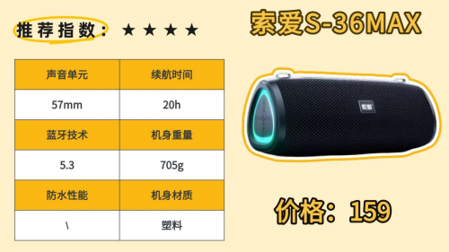 9、索-爱S-36MAX蓝牙音箱
