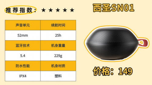 1、西圣SN01蓝牙音箱