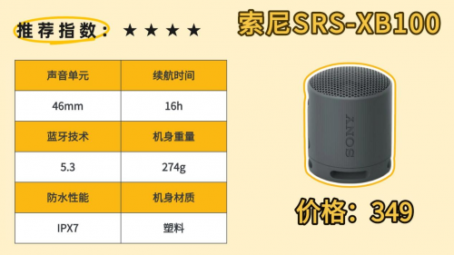 7、索-尼SRS-XB100蓝牙音箱