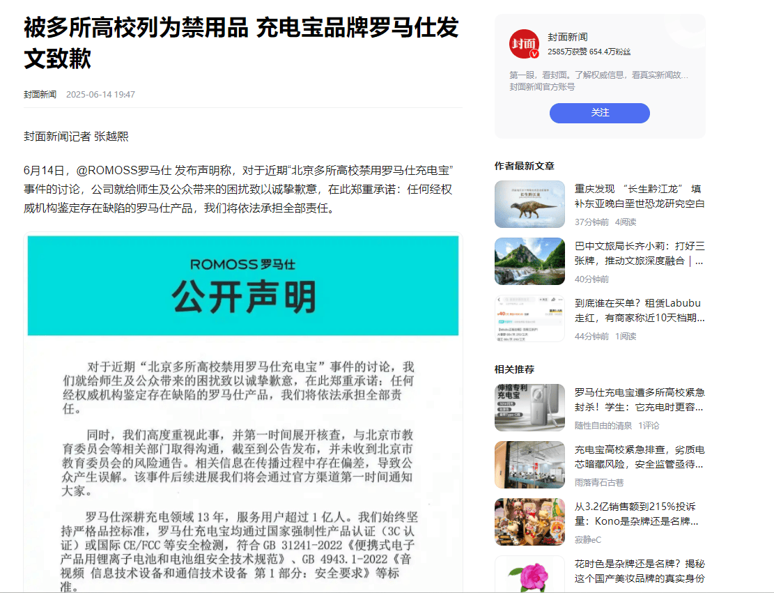 近期,罗马仕充电宝被国内多所高校拉入“黑名单”,禁止学生在校园内使用,这一事件引发了广泛关注。在各大高校的公告中,明确指出禁止使用罗马仕充电宝的原因主要聚焦于安全隐患。充电宝作为学生日常学习和生活中常用的设备,使用频率极高,其安全性能至关重要。