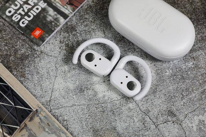 JBL SoundGear Sense 采用开放式耳挂设计,耳挂部分支持 3D 旋转调节,可灵活适应不同耳型,实现更贴合的佩戴体验。整体结构符合人体工学,即使长时间使用也不会产生明显不适。不过对于耳廓较小的用户来说,耳挂在剧烈运动中可能略显笨重,需适应一段时间。