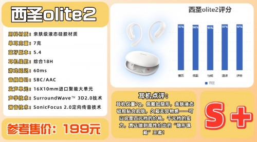 选挂耳式耳机,舒适稳固是第一优先,音质和连接体验也不能将就。综合今年几款热门产品的实测表现来看,不少百元耳机都在配置上给出了惊喜。但如果你希望一步到位选中一款在佩戴舒适度、音质均衡性与整体实用性上表现全面、没有明显短板的产品,那么西圣Olite2绝对是值得优先考虑的选项。作为近年来被多家数码媒体反复推荐的“百元性能天花板”,它或许正是你在这个价位段里,不想错过的那一款。