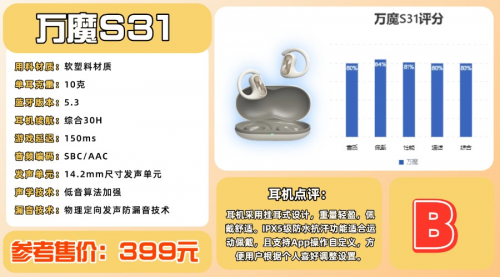 佩戴体验:耳机采用挂耳式设计,重量轻盈,佩戴舒适。IPX5级防水抗汗功能适合运动佩戴,且支持App操作自定义,方便用户根据个人喜好调整设置。部分用户反馈,长时间佩戴后耳朵周围可能出现轻微不适,但总体舒适度较高。