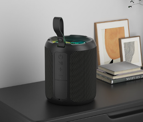 这款蓝牙音箱采用炫酷黑的外壳,时尚又霸气,不仅适用于桌面,户外和家用场景,甚至可以作为车载音响。而且其内置的全彩灯环与音乐节奏同步闪烁,为用户增添了视觉体验。