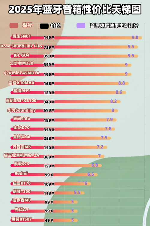 什么蓝牙音箱听歌音质最好?在快节奏的现代生活中,音乐已成为我们放松身心的重要伴侣。而一款音质出众的蓝牙音箱,更能将旋律中的细腻情感与澎湃能量完美释放,让每一首歌都焕发新生。然而,面对市场上琳琅满目的蓝牙音箱产品,如何挑选出兼具高性价比与卓越音质的“实力派”,成了许多音乐爱好者的难题。