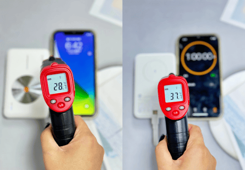 ②小米:在60分钟的实测中,小米的这款充电宝的一个温度上升到37.7℃,机身是采用了高精度温度检测器与先进的控制管理芯片联合一起控温的,在相对于西圣充电宝的话,小米的温度会偏高一点。