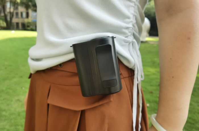 不同于传统风扇,这款西圣高速挂腰风扇WindHip的造型就像一个小型望远镜或者微型摄像机,小巧迷你的造型,携带非常方便,93×61×78mm的尺寸,就算是揣在口袋里也行。它的机身重量仅有 182g,拿在手里几乎没有存在感,挂在身上也没有负担。