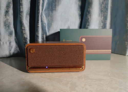 这款蓝牙音箱的外观设计非常复古,颜色选择也很多,有合金烤漆款和胡桃木款,而且它体积小巧,整体造型宛如一台经典的老式收音机,极具辨识度。