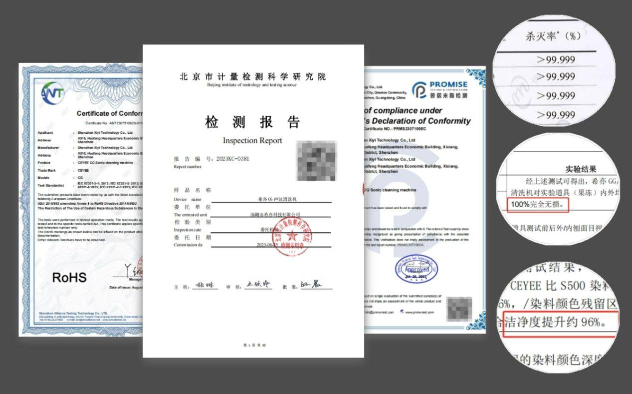 CEYEE希亦超声波清洗机完全拿国际大牌的生产标准和工艺来生产,同一批次只挑选80%产品上市开卖,相当严苛。还进行了超过三年的性能抗衰减设计和测试,以确保产品在使用过程中性能稳定。并对每一款产品进行了42种不同的清洁场景性能测试,确保其在各种环境下都能保持优异的表现,使其可以做到使用两年情况下性能衰减不到5%!