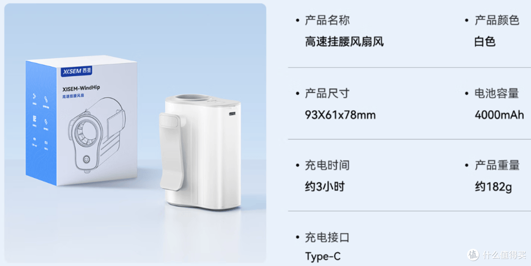 ▲可以挂腰也可以挂脖子,五档风速调节,大容量电池,LED显示等。