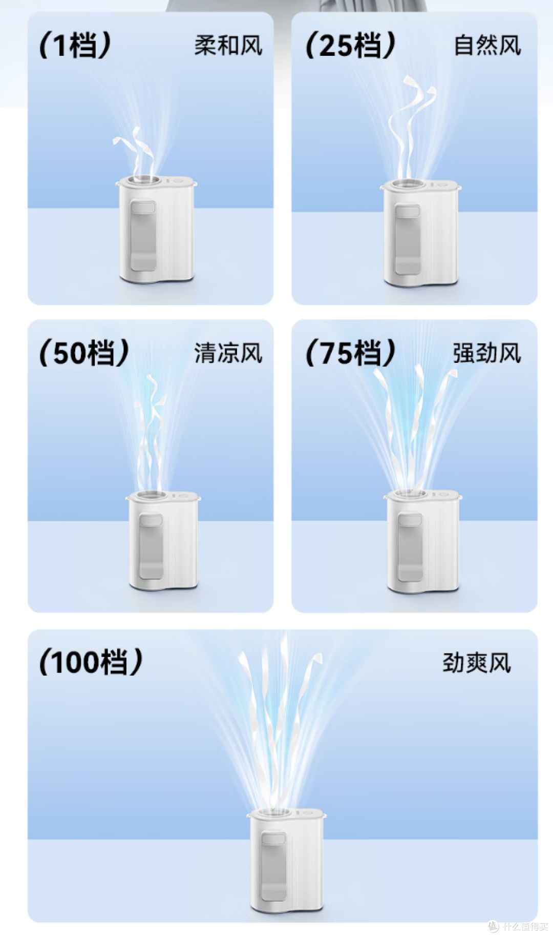 ▲有五档风力调节,加上1-100的无极调速,可以根据自己的需求和环境温度来调整风力大小,从最低档的柔和风到最猛的劲爽风,自己喜欢哪个档位就调节哪个档位。美滋滋。