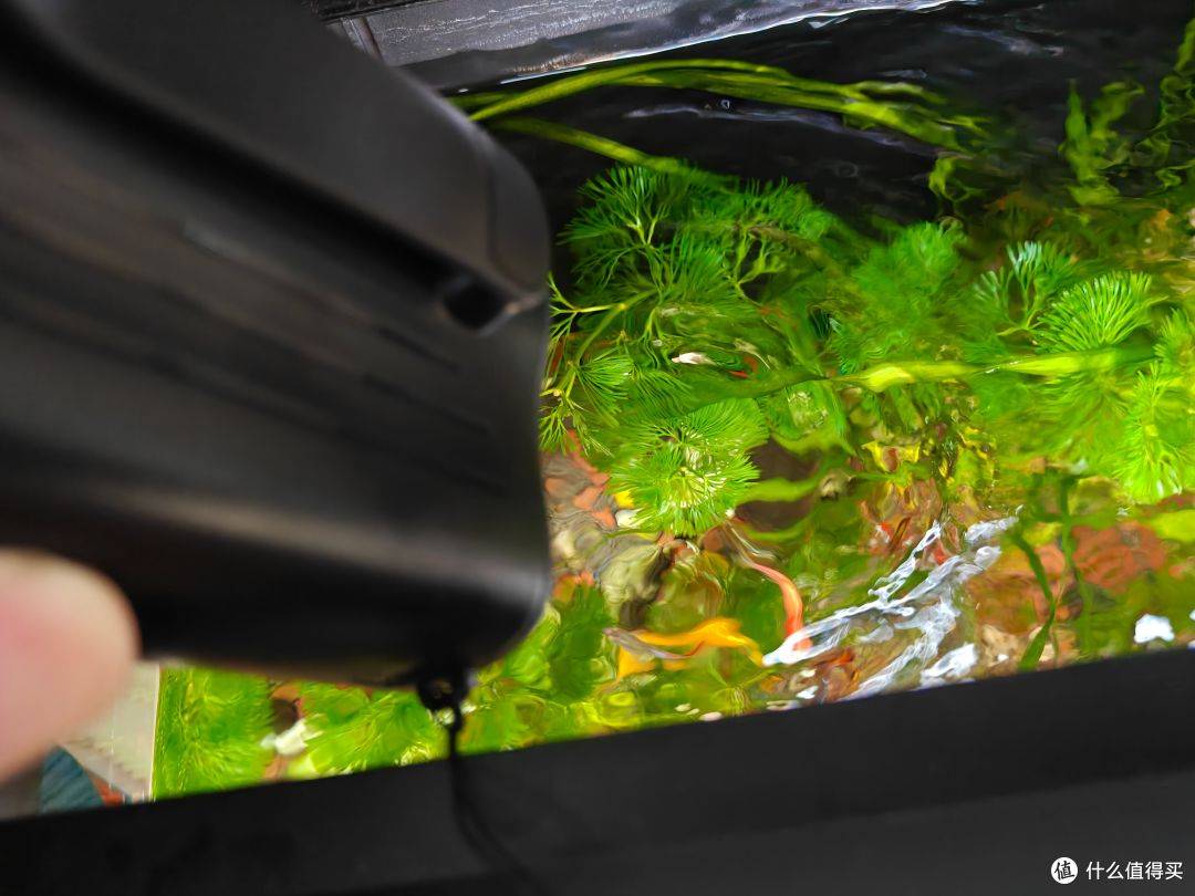 ▲我试着对着鱼缸里面的水吹了一下,可以看到水面立马波浪滚滚,风力相当猛。