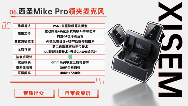 要是有人问我有什么特别惊艳的无线麦克风,西圣Mike Pro我逢人必推,理由很硬核:一是收音清晰度直接拉满,二是降噪黑科技稳如磐石,三是兼容性强悍操作无脑,关键469的价格还不到千元专业麦的一半。
