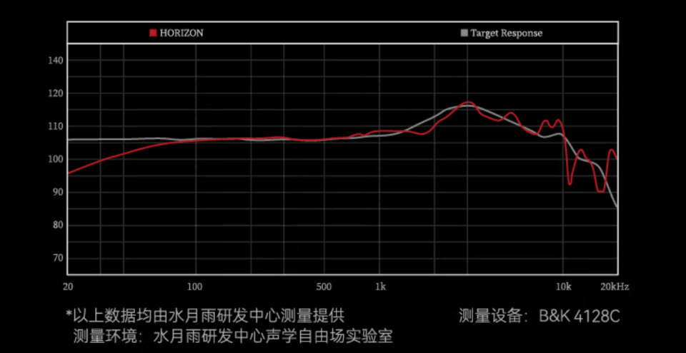 频响方面,水月雨Horizon水平线耳机仍然符合VDSF曲线,全新设计的50mm UHE动圈单元在音频表现方面带来更多的惊喜,自由场f0低至80Hz,耳机三频表现相当均衡,而且拥有更出色的超低音下潜和更平滑的高频响应,舒展饱满自然的音色让人久听不厌,比普通开放式动圈耳机真的要强很多。