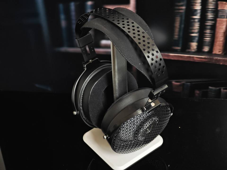 水月雨Horizon水平线耳机的外观相当有特色,黑色金属材质的头梁上面布满了精密排列的密集开孔,搭配开放式金属格栅外壳,将工业美学与高强度结构完美的融合在一起,耳机外观相当酷炫有型,拥有超高的辨识度。