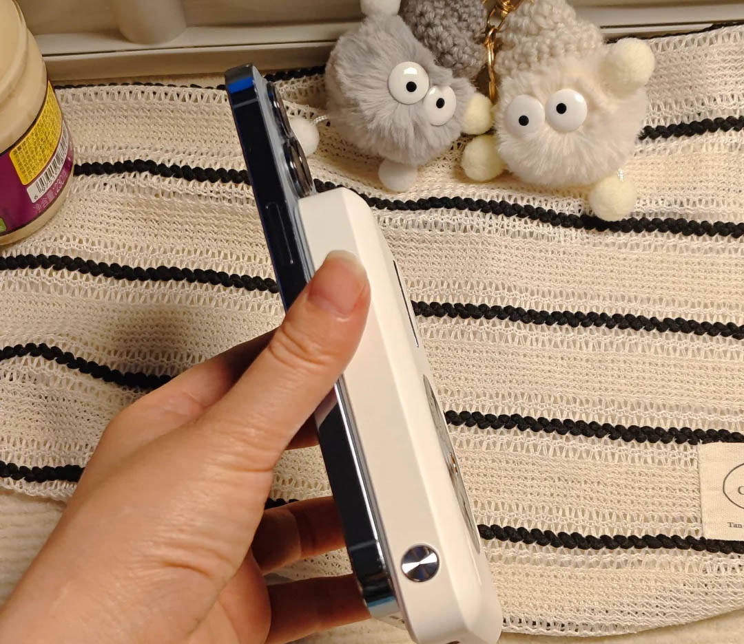 西圣无线磁吸充电宝的设计非常人性化,厚度仅有18.5mm的超薄机身设计,重量仅有204g,只手可握,拿在手上充电,也不会觉得有重量感。将它贴住手机背面充电使用的同时也并不会遮挡摄像头模组,完全不影响各种场景下手机的正常使用。