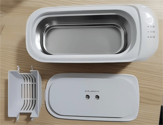 不过需要注意的是,相比同价位竞品,这款清洗机缺少紫外线杀菌功能,这意味着它更适合日常清洁需求,对于有严格杀菌要求的用户可能需要考虑其他型号。但就普通家用而言,它的清洁性能已经足够出色,特别是对眼镜、首饰和美瞳的日常护理,完全能够满足需求。