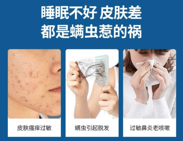 螨虫给人们的健康带来诸多威胁。其排泄的蛋白酶会溶解皮肤角质,容易使过敏人群出现荨麻疹、鼻炎甚至哮喘等症状;对婴幼儿来说,螨虫尸体碎片可能诱发特应性皮炎;养宠家庭由于毛发与皮屑的叠加效应,尘螨浓度往往超标3-5倍,过敏风险呈几何级增长。