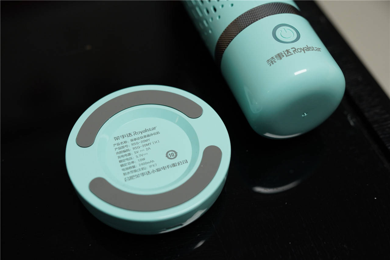 荣事达钛果蔬净化机的充电接口,被设计在充电底座的侧边,我很喜欢这种无线底座充电方式,这样能够保证产品主机达到更好的防水能力,官宣防水等级达到了IPX7,因为这款产品的使用环境,防水能力也是长期使用的关键指标。