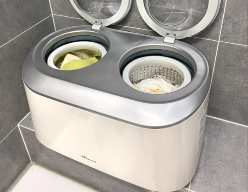 它为双桶设计,这样的设计不仅提升了洗涤效率,还能根据不同衣物材质选择合适的清洗模式。用户可以将内衣外衣分开洗涤,避免交叉感染,特别适合有宝宝的家庭使用。