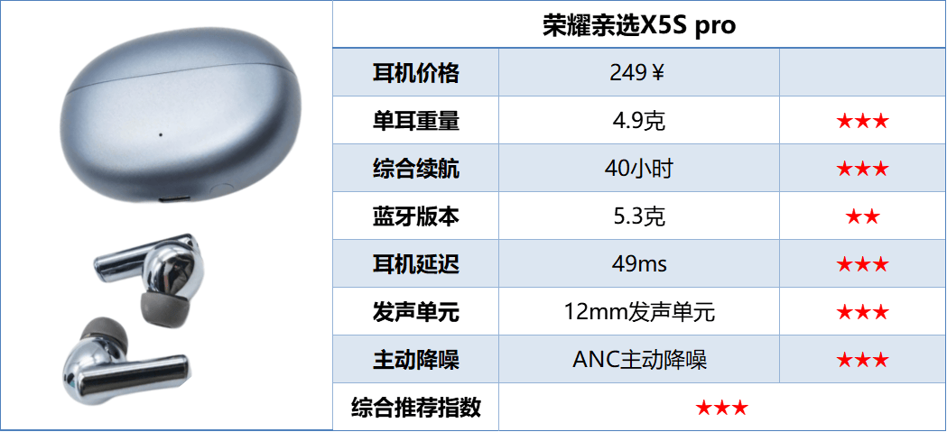 3、荣 耀 亲 选X5S pro蓝牙耳机