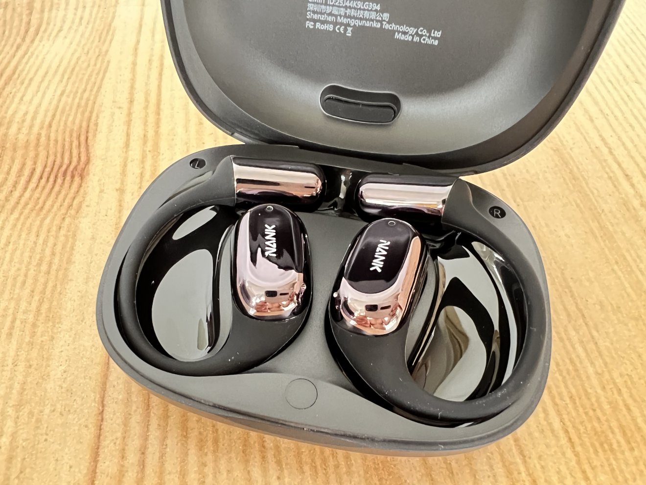 耳机的操作使用隐藏式触控按键.“NANK” 标识位置就是触摸区域,这个设计很巧妙,操作也简单便捷,单手即可轻松完成,在运动过程中也能方便地进行操作。通过长按、单击、双击、连续点击等不同操作,可实现开机 / 关机、调节音量、播放 / 暂停、开启 / 关闭语音助手、切换音乐 / 游戏模式等功能切换。