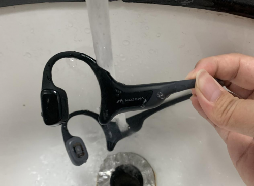 韶音 OpenRun Pro2 的防水等级为 IPX5 级,防护能力相对较弱。它只能应对普通的清水泼溅,在模拟暴雨冲刷时,只要水流稍大,就会出现按键失灵的情况;将其在水下浸泡 5 分钟后取出,会有短暂的杂音,使用体验大打折扣。这款耳机只适合出汗量少的运动。