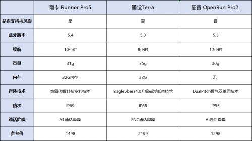 作为一名用过众多骨传导耳机的测评者,我深知大家选购时的关注点。为了帮大家避开雷区,选到合适的产品,我挑选了南卡 Runner Pro5、韶音 OpenRun Pro2 和墨觉 Terra 这几款热门机型,从音质、佩戴舒适度、防水能力、抗风噪效果等方面进行了实测,客观分析它们的优缺点。