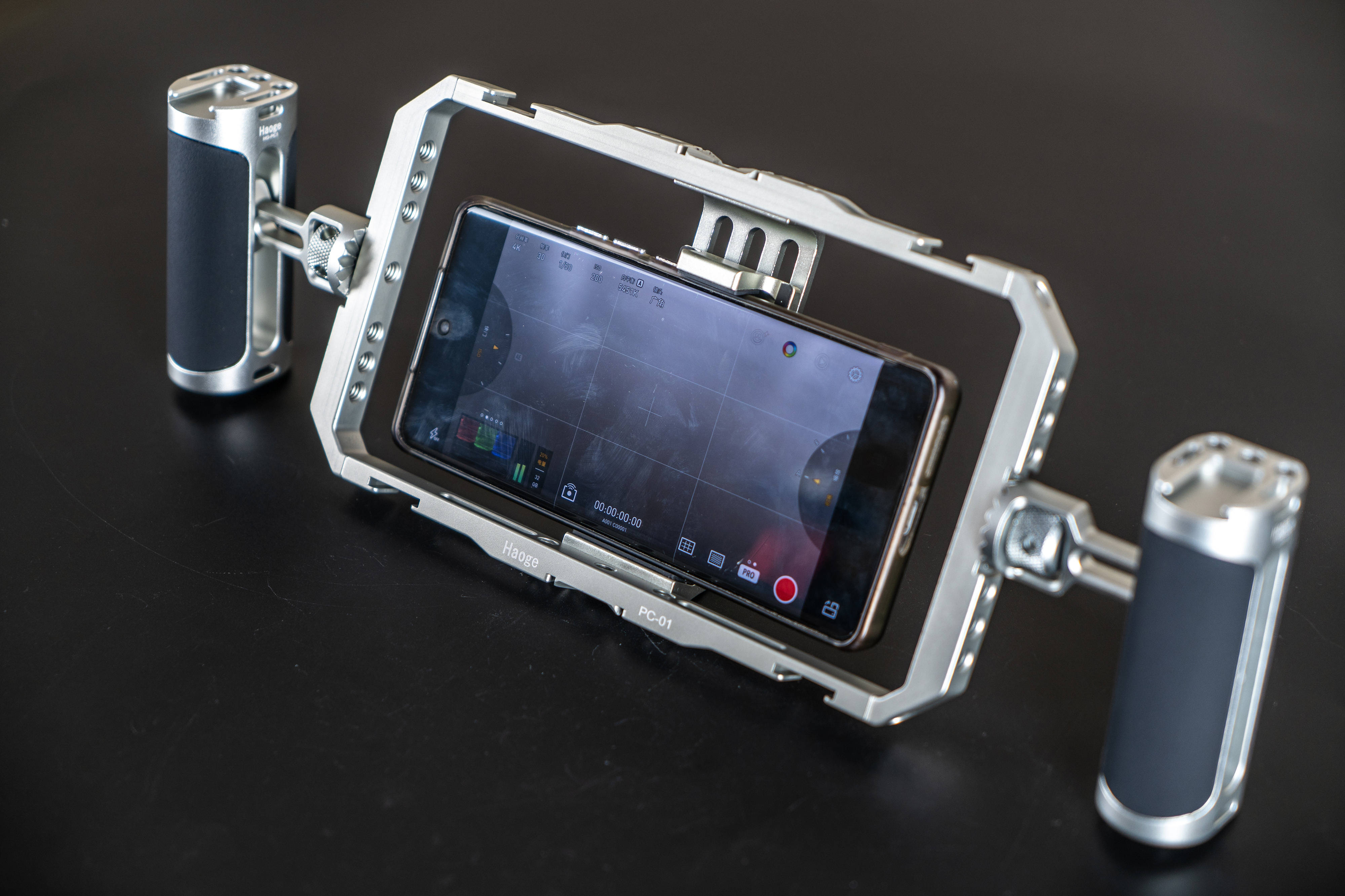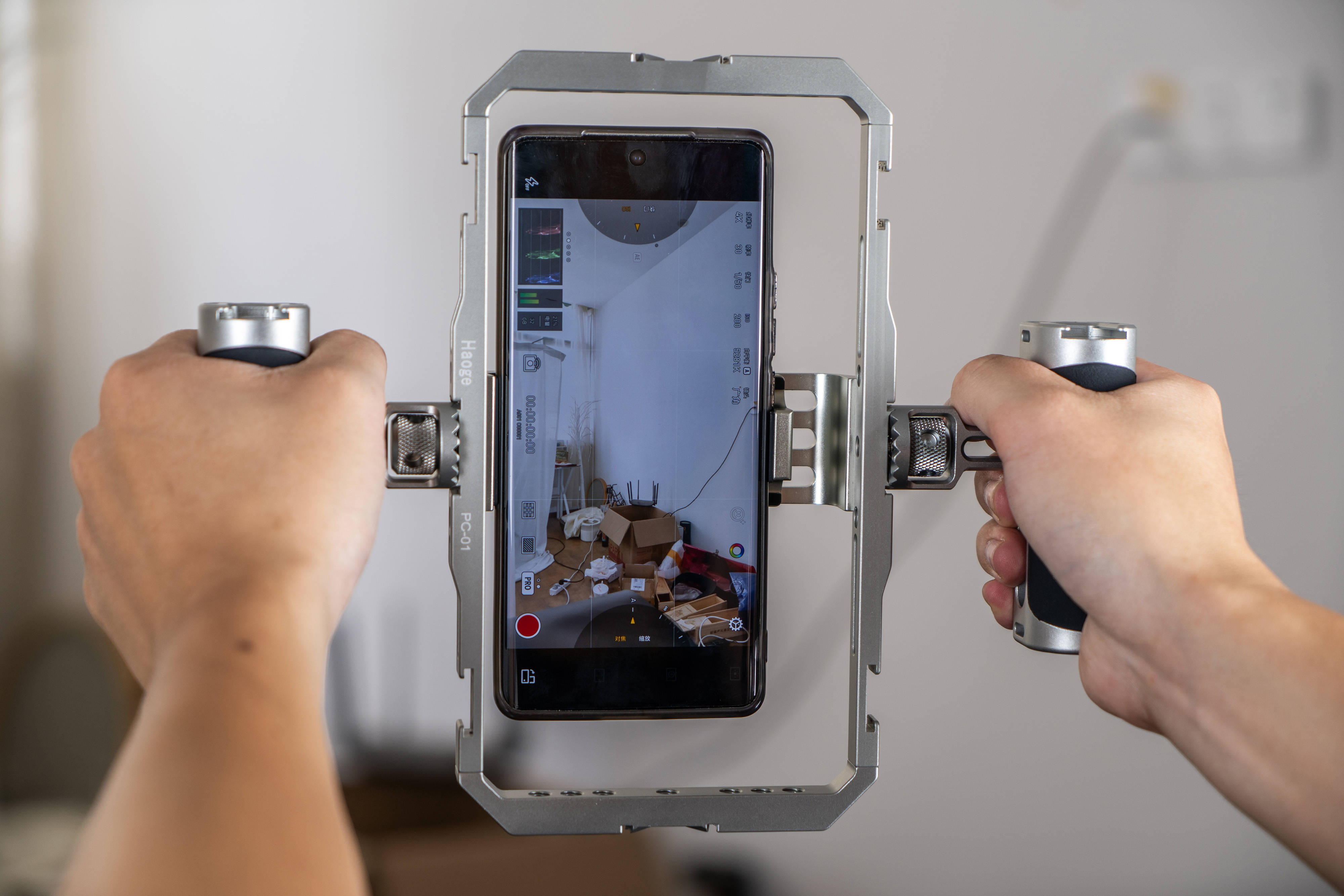 ▼因为有两个手柄双手握持,不再是手指捏着手机边框,对手机的控制更加平稳舒适,屏幕也完全没有任何遮挡,对拍摄是能提供一些帮助,提高拍摄效率,最重要的是能够添加很多辅助配件在机位,无需额外安排专门的人员来拿
