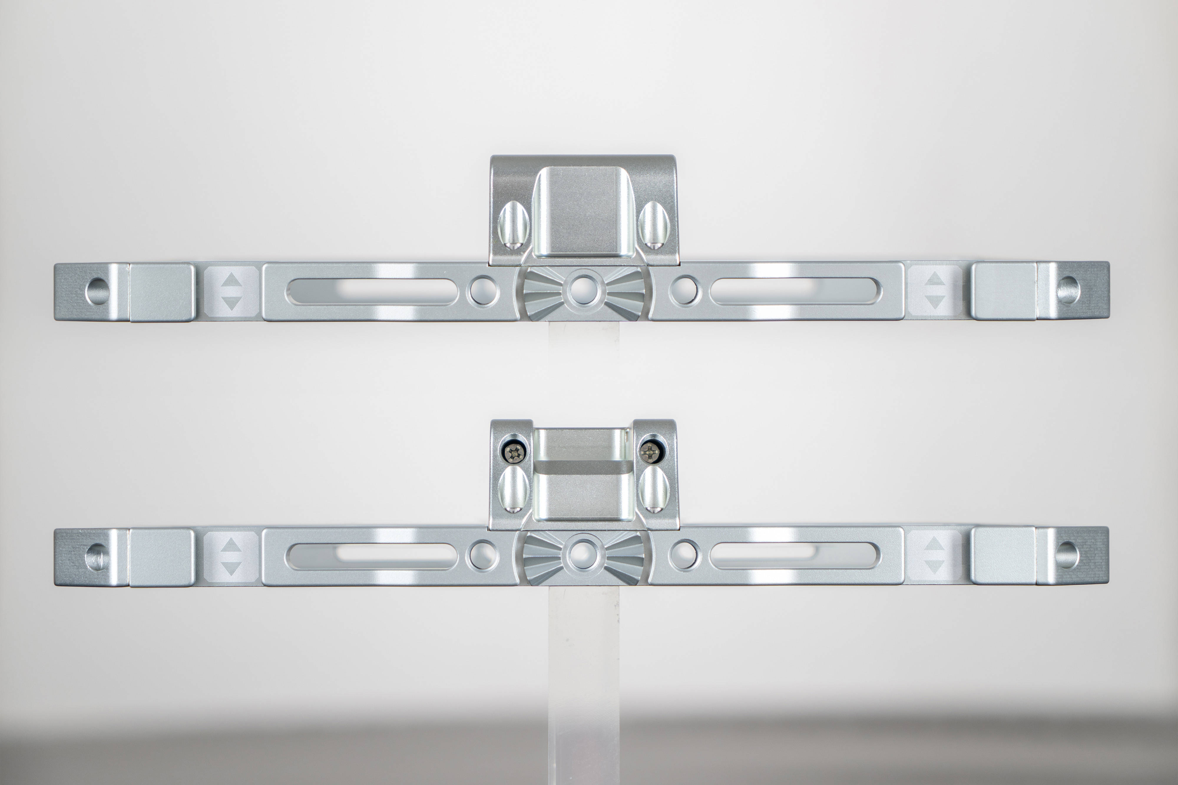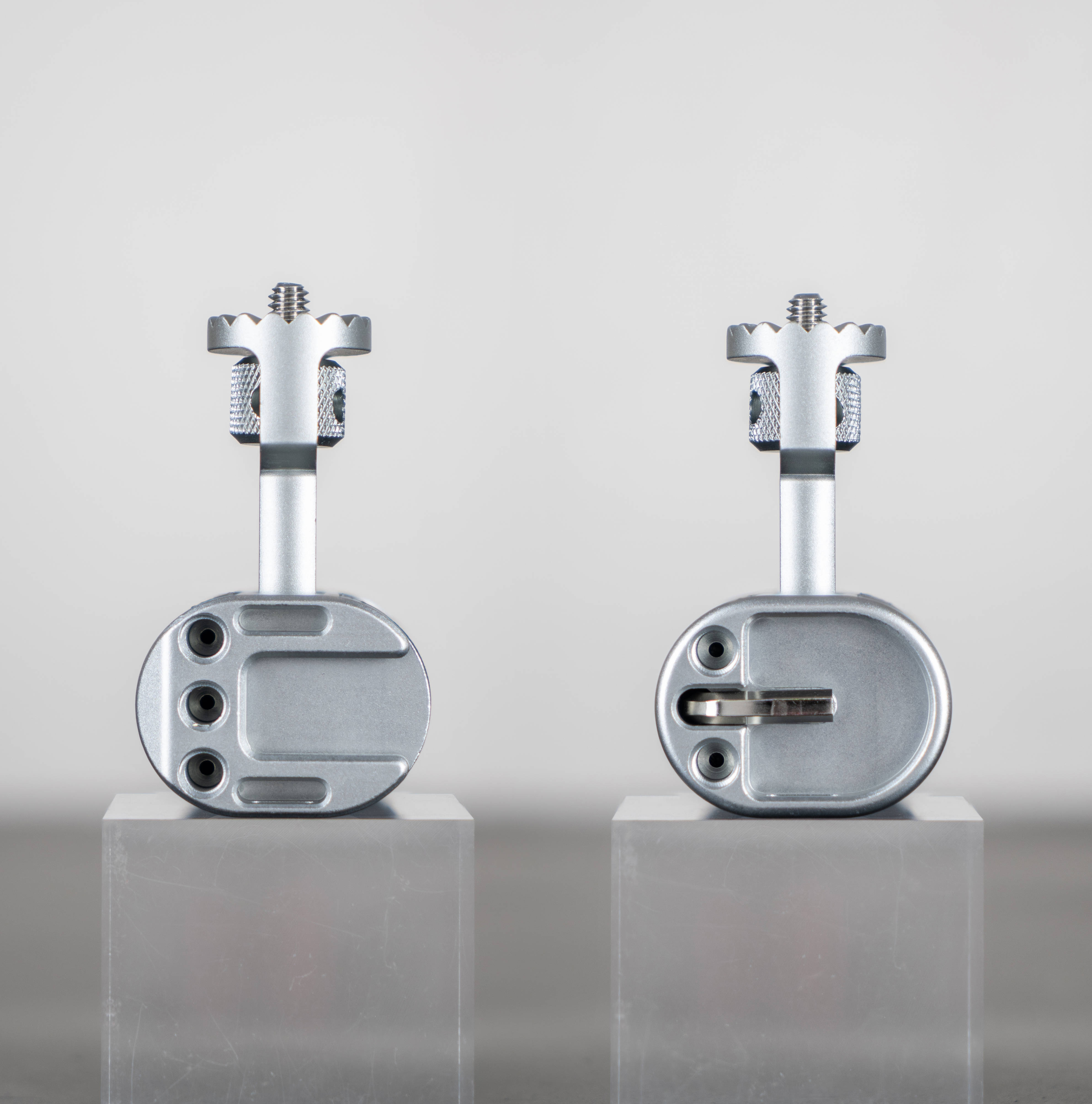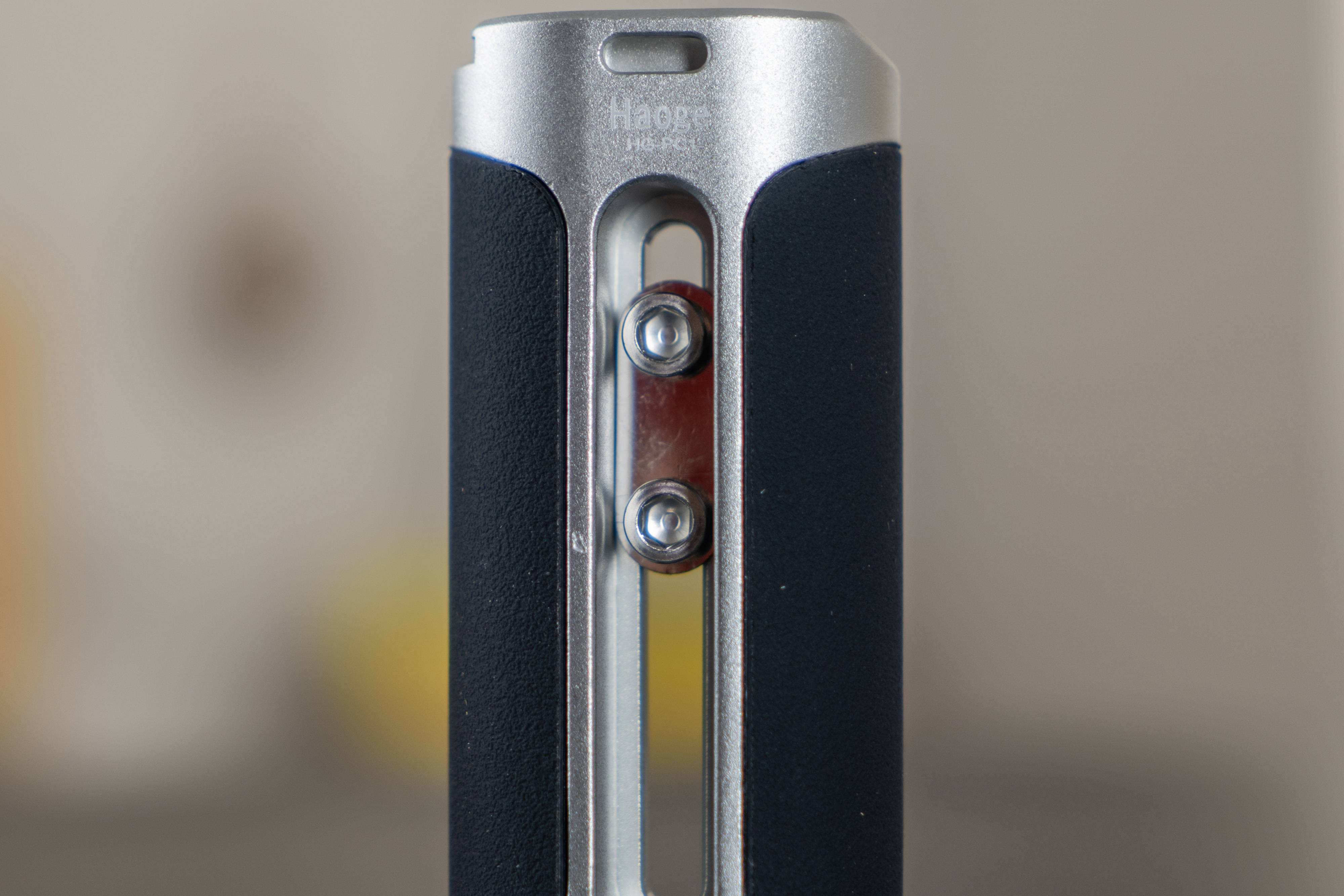 ▼标配的手柄是左右对称可互换方向设计,前后都覆有黑色防滑橡胶垫,两侧上下边缘各有一个挂绳孔,可安装腕带或独根挂绳,连接杆用两颗内六角螺丝固定,可以通过调节上下位置来适配最舒适的握持姿态,连接杆可以兼容阿莱齿牙盘,如果你没有内六角扳手也不用担心,每个手柄的底部都为你标配并磁吸收纳了内六角扳手,可以用来调节手柄和锁紧牙盘螺丝;手柄上下两头共有五个1/4螺纹孔,顶部还有一个冷靴接口,这么看下来号歌这套手机兔笼扩展性真的非常强,有点可惜的就是所有螺纹孔都是1/4规格并没有3/8规格,希望后续批次可以改进改进,每条边都增加一两个3/8螺纹孔