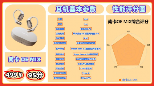 南卡 OE MIX 开放式耳机参考价格:499元蓝牙版本:5.4