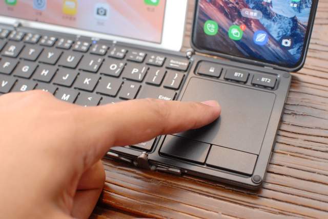 值得一提的是,B.O.W航世 HD088F无线蓝牙双模折叠键盘可不单单是一把键盘,它还自带触控板,直接把鼠标给“省”了,轻装出行,就是这么轻而易举!