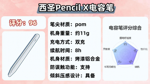 西圣Pencil X这款电容笔以高性价比和稳定的书写表现在一众平替电容笔中脱颖而出,无论是日常书写还是长时间绘画创作,都能完美满足专业与业余用户的高标准需求,成为无数创作者的首选装备!