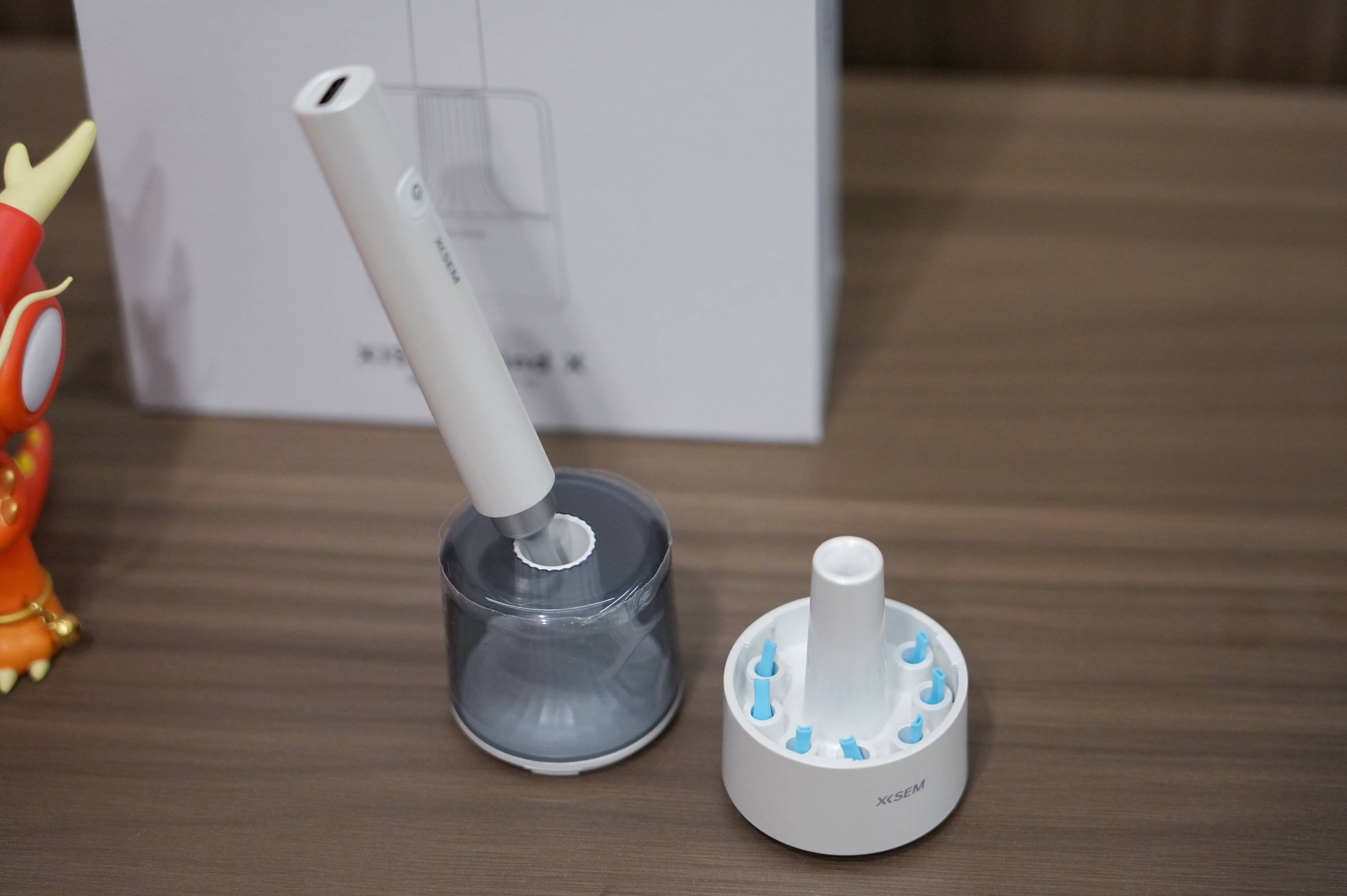底座还是个收纳充电二合一的设计,不用时把耳勺放进去,既能充电又能避免丢失。实测充满电后能用好几次,续航完全够用,平时随手放床头,想掏耳朵随时拿起来用。