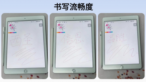 西圣电容笔:书写表现出色,采用了新一代触控芯片,响应速度快,还搭载了行业巅峰的50段智能信号调节,延迟感控制较好,能跟上我们快速书写的节奏。而且它使用了1.5mmPOM笔尖与0.1mm超细压感触点,书写流畅,边缘精度也比较高。同时,它支持全屏防误触与倾斜压感功能,书写时手可以自然放在屏幕上,干扰较少,而且线条的深浅粗细程度会随笔尖的倾斜角度做出变化。整体的书写表现很突出,具有超98%还原apple pencil的使用体验!